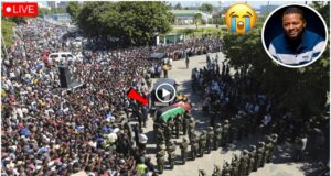 Esposa do Azagaia e suas filhas descem do carro fúnebre e...